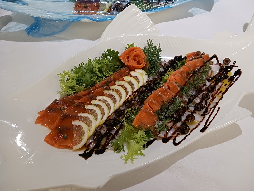 - スモークサーモンとタコのカルパッチョ